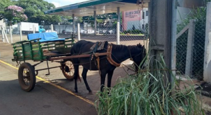 O posto de combustíveis no centro de Campo Mourão está fechado, mas o cavalo nem precisou dele para se "abastacer". Tinha "capim" junto ao poste para o "lanche" matinal. A cena foi na rua Harrison José Borges, quase esquina com av. Irmãos Pereira.