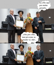Os cliques são desta quinta-feira, durante sessão da Câmara em homenagem ao Dia Internacional da Mulher. O prefeito Tauillo Tezelli prestigiou a entrega do Prêmio Mulher Cidadão. Teve pose ao lado das homenageadas, inclusive junto com o "desafeto" vereador Luiz Alfredo. Ah, ossos do ofício...