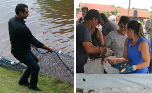 Em Boa Esperança é tradição. Todo ano a prefeitura coloca uns peixes a mais no lago do Parque Ecológico e na Semana Santa faz a distribuição aos moradores. Esta ano foram 10 mil tilápias, que renderam 8 toneladas de peixe. Só não levou peixe pra casa quem não quis. O prefeito Zé do Caixão ajudou na retirada da "peixarada". O secretário de Estado Douglas Fabrício (Esporte e Turismo) acompanhou e ficou impressionado com o que viu.
