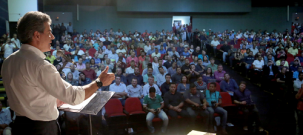Na faixa - O aluguel do teatro para eventos não-culturais custa R$ 1.500. Para o governo do Estado, no entanto, foi de graça. A prefeitura entende que o governo é parceiro e a cobrança seria "deselegante".