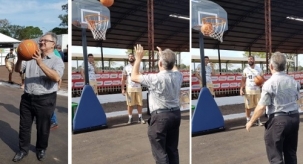 O presidente da Câmara, Edson Battilani, resolveu mostrar seu lado esportista. Neste sábado, no Parque de Exposições, fez arremessos de lances livre numa tabela móvel de basquete. Para os discípulos de São Tomé, olha aí o registro de Rafael Silvestrin. No mais, se o time de Campo Mourão precisar de um reforço pra próxima temporada...