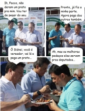 Virou tradição. Assim que o tacho é retirado do buraco número um, as autoridades presentes têm direito a umas beliscadinhas. Neste domingo tinha até prato pra isso. O vereador Sidnei Jardim ficou sem, mas não se acanhou, não. Beliscou um pedaço no prato do secretário Carlos Alberto Facco e outro do deputado Márcio Nunes