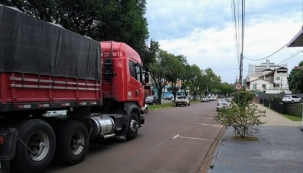 Carreta passa pela av. Capitão Índio Bandeira, centro de Campo Mourão. A foto é da manhã desta quinta-feira.