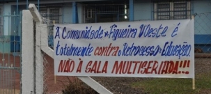 Polêmica na educação de Engenheiro Beltrão. A prefeitura propôs a criação de turmas multisseriadas em escolas dos distritos de Sertãozinho e Figueira do Oeste. Parte da comunidade não gostou, não. Foi feito até faixa para protestar contra o "retrocesso na educação".