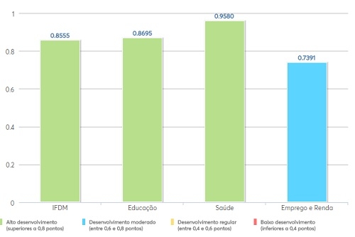 Ficou com média de 0,8555, o que é considerado "alto desenvolvimento".