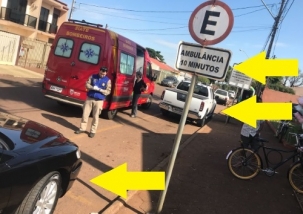 A placa em frente ao posto 24 horas não deixa dúvidas. Ali é local reservado para ambulâncias. Só que a cena desta segunda-feira é comum. A ambulância chega e tem de descer o paciente no meio da rua porque tem carro indevido parado no local.