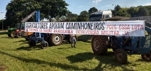 "Agricultores do distrito de Piquirivaí, neste sábado, juntos com a paralisação dos caminhoneiros".