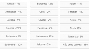 A opção "Não bebo cerveja" ficou em segundo, com 16%.