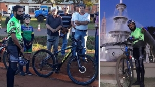 O padre Sidnei Teixiera, de Luiziana, apoiou a manifestação dos caminhoneiros, nesta segunda-feira. E pedalou bastante. Ele celebrou missa no trevo da BR-487 e em seguida foi para a concentração dos caminhoneiros em Campo Mourão. De bicicleta! Como já estava por ali, aproveitou para um pulinho até a catedral São José. Tudo de bike, assim como o retorno a Luiziana. E cá pra nós: na descida todo santo ajuda, mas na subida...