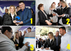 3) Ao lançar o tótem de autoatendimento da Sanepar, Cida acompanhou a primeira-dama Hosana Tezelli, que tirou a segunda via da fatura de água.