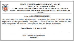 A liminar foi concedida pela juíza Luzia Terezinha Grasso Ferreira.