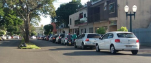 "Fila de carro para abatecer carro nesta quarta-feira à tarde em Campo Mourão. Tinha duas quadras de extensão".