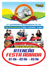Foi adiada para os dias 1, 2 e 3 e junho a festa de aniversário de Corumbataí do Sul.
