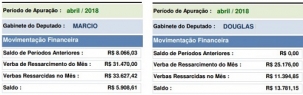O primeiro encerrou abril com R$ 5,9 mil em sobras e o segundo com R$ 13,7 mil.