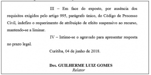 O desembargador Guilherme Luiz Gomes alegou ausência de requisitos exigidos para levar o pedido em consideração.