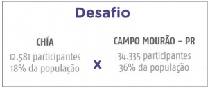 O Sesc começou a divulgar nesta segunda-feira os resultados do Dia do Desafio, que aconteceu no último dia 30. Campo Mourão venceu outra vez. Mobilizou 36% da população em alguma atividade física, contra 18% de Chía, na Colômbia. Segundo o Sesc, 34.335 mourãoenses participaram do Dia do Desafio. Em Chía foram 12.581. Ih, será que vai ter "chiadeira" por lá?...
