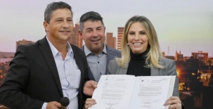 Antes, foi à TV Carajás e, lá mesmo, assinou liberações de recursos para Campo Mourão, Fênix e Ivatuba.