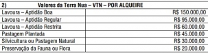 O prefeito Tauillo Tezelli assinou decreto definindo o valor da terra nua para efeito de cobrança do Imposto Territorial Rural. O alqueire bom para lavoura foi avaliado em R$ 150 mil (R$ 61,9 mil o hectare). Se a aptidão para agricultura for regular, cai para R$ 95 mil o alqueire (R4 39,2 mil o hectare). Os demais valores por alqueire estão no quadro acima. Os números foram levantados pela Comissão de Avaliação de Valores Venais de Imóveis.