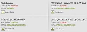 Estão vencidos os laudos de segurança (desde o dia 27), de condições sanitárias (desde o dia 1) e prevenção a incêndio (desde fevereiro).