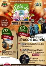 A prefeitura de Farol definiu a programação da Festa do Pernil à Pururuca. O prato típico do município será servido no dia 3 de setembro. A programação começa um dia antes, no sábado, com a prova dos três tambores (14h), cujas finais serão no domingo pela manhã (8h30). O prato típico será servido às 12h, seguido de show com Wallesca Santos e Banda (14h) e com a dupla Burno & Barreto (16h). Durante o domingo também haverá exposição de carros antigos. O convite do pernil à pururuca custa R$ 50.