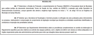 A decisão de enviar o caso para a Proge está na portaria sobre a polêmica retirada da barraca de garapa da praça do Ilha Bela.