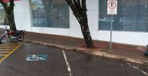 Ao sair esta semana de entrevista da rádio Musical FM, o vice-prefeito Beto Voidelo foi parado por moradora. Ela foi cobrar a recolocação da placa de vaga exclusiva para portadores de deficiência na rua Harrison José Borges, em frente ao Bradesco. Disse que a placa foi derrubada faz tempo e até agora nada. Segundo ela, o mesmo ocorre em vaga para idosos em frente à Caixa Econômica, na rua São José. Nos dois casos ficou apenas a sinalização horizontal, que nem sempre é respeitada.