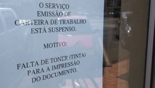 Outro dia tinha um recado na porta da agência local do Ministério do Trabalho que o órgão estava fechado porque a única servidora estava de férias. Agora tem um novo recadinho por lá. A Carteira de Trabalho não está sendo emitida por falta de tôner na impressora. Sem tinta não dá para imprimir o documento. Ah, governo que governa para o mercado financeiro ao invés do povo dá nisso...