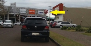 Em frente ao Prever, carro estaciona onde a placa diz que é proibido parar e estacionar.