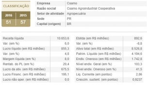 Saiu a edição "Valor 1.000" do jornal "Valor Econômico", que todo ano traz a lista das mil maiores empresa do Brasil. Como sempre acontece, a mourãoense Coamo se destacou. Com faturamento de R$ 10,6 bilhões, a cooperativa de Campo Mourão aparece como 51ª maior do País. No levantamento anterior tinha sido 57ª . A novidade foi que, desta vez a Coamo, não foi a campeã do setor agropecuário, não. O título foi para uma tal Friato. Ah, depois que até o Leicester levou a Premier League...