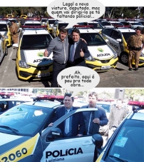 entrega de viaturas policiais durante a semana, em Curitiba, segue rendendo balãozinho aqui na Boca Santa. Desta vez o destaque é para o prefeito de Luiziana, Mauro Slongo, que recebeu o carro novo para a Polícia Militar ao lado do deputado Márcio Nunes. Ah, tá pensando o quê!...