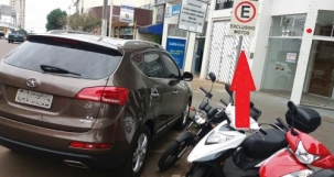 Na rua Mato Grosso, centro de Campo Mourão, tem estacionamento exclusivo para moto. Mas aparece cada "moto" grande...