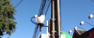 Principal avenida de Campo Mourão, a Capitão Índio Bandeira está com 57 lâmpadas queimadas, a maioria delas em postes republicanos. A contagem foi feita na terça-feira à noite no trecho entre as ruas Miguel Luiz Pereira e Santos Dumont. Isso sem contar os casos em que nem o poste republicano existe mais. Também há pelo menos 20 luminárias quebradas ao longo da avenida, como esta da foto, no calçadão.