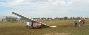 Teve acidente neste domingo à tarde no aeroporto de Campo Mourão. Foi com um avião que transportava paraquedistas. O trem de pouso quebrou após a aterrissagem e a aeronave ficou "meio tombada" no local, danificando uma das asas. Ninguém se feriu.