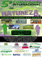 Chegou a vez de Campina da Lagoa realizar sua Caminhada Internacional na Natureza. Será neste domingo (8h), com a quinta edição do Circuito Rainha das Águas. A saída será em frente a Feira do Produtor. O café da manhã, para quem quiser, custa R$ 10. O almoço na chegada custará R$ 25. Para caminhar os 10 km entre trilhas e estradas rurais não paga nada. A promoção é da prefeitura e da Emater.