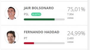 Em 12 cidades o candiato do PSL passou dos 60%.