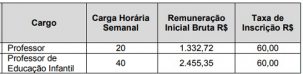 Os salário são de R$ 1,3 mil e R$ 2,4 mil, respectivamente.