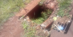 Mais um bueiro todo quebrado perto da Secretaria de Obras e Serviços Públicos. Esse é em frente ao Sport, ao lado do SAS e do batalhão da PM. Está há mais de três meses nessas condições.