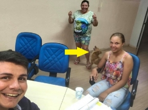 Olha a foto que prefeito de Moreira Sales, Rafael Bolacha, postou no Facebook. "Hoje quem veio ao gabinete foi minha grande amiga Célia, sua filha Tânia e a July", escreveu. July, no caso, é a cachorrinha. A postagem rendeu elogios de moradores. "Exemplo de prefeito, parabéns pelo gesto", escreveu um internauta. "Parabéns por ser esse ser humano incrível e prefeitão diferenciado", destacou outro.