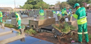 "É uma força tarefa que organizamos no sentido de deixar o cemitério limpo, organizado e aprazível para todos. A todas as pessoas que tem entes queridos sepultados aqui no cemitério pedimos que nos ajudem a cuidar, pois nós temos uma área grande a se conservar, assim, só nesta força-tarefa, teremos uma semana de trabalho". Ireno dos Reis Pereira, diretor da Secretaria de Obras e Serviços Públicos.