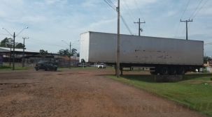 "Na entrada do jardim Modelo, esse é o jeito que alguns caminhoneiros deixam a carreta encostada. Atravessada na entrada do bairro, quase sem acesso".