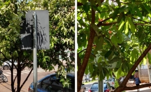 Placa em local reservado para pessoa com deficiência. Na av. Capitão Índio Bandeira entre as ruas Devete de Paula Xavier e Roberto Brzezinski.