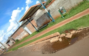 "Ponto de ônibus no conjunto Fortunato Perdoncini. Asfalto danificado, meio-fio quebrado. Além de tudo, a água fica parada o tempo todo. De quem é a responsabilidade em fazer a manutenção? Será que se fosse no centro estaria assim?"