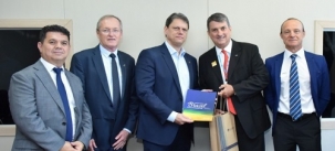 Representantes de cooperativas se reuniram nesta quarta-feira, em Brasília, com o ministro de Infraestrutura, Tarcísio Gomes de Freitas. Da Coamo foi o superintendente de Logística e Operações, Airton Galinari (primeiro da dir. para a esq.). Em pauta, questões relacionadas ao transporte rodoviário de cargas. As cooperativas entregam um estudo sobre o setor de transporte, realizado ano passado, por encomenda da OCB.