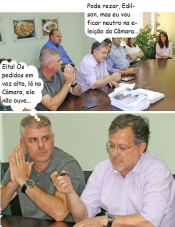 Os cliques são desta segunda-feira, no gabinete do prefeito Tauillo Tezelli. O evento era sobre a regularização da Vila Guarujá, O vereador Edilson Martins parecia rezar ao lado do prefeito. Martins, aliás, é um dos quatro pré-candidatos a presidente da Câmara. A eleição será terça-feira. Além dele, estão no páreo Edoel Rocha, Jadir Pepita e Olivino Custódio.