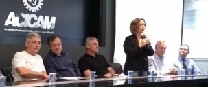 Edilaine Maria de Castro, da Associação Sou Arte, brincando com as famosas "choradeiras" do prefeito Tauillo Tezelli (PPS); durante lançamento do projeto Campo Mourão Cidade Natal, na Acicam, nesta sexta-feira.