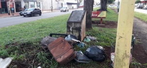 "Av. John Kennedy, começo do Lar Paraná. Mala e restos de televisores no canteiro central".