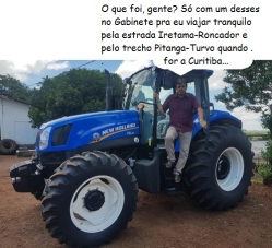 O clic é de Iretama, onde a prefeitura anunciou a compra de um novo trator e equipamentos para atendimento dos agricultores que necessitarem dos serviços. O investimento foi de R$ 230 mil, sendo R$ 190 mil de emenda parlamentar e R$ 40 mil em recursos próprios. O prefeito Wilson Bratac foi experimentar o tratorzão.