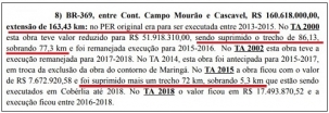 O Ministério Público Federal ofereceu denúncia nesta segunda-feira contra o ex-governador Beto Richa e mais 32 pessoas por corrupção nos pedágios. A denúncia tem 115 páginas. O texto descreve até como a duplicação da BR-369, entre Campo Mourão e Cascavel, que era para ter 163,4 km e estar pronta em 2015, acabou com apenas 5,3 km, em Corbélia. Isso mesmo: De Campo Mourão a Cascavel serão somente 5,3 km duplicados.