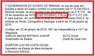 A nomeação do governador Ratinho Jr foi publicada na quarta-feira.