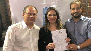 Foto: Salvadori com a presidente estadual do PP, deputada Maria Victoria, e com o deputado federal Ricardo Barros.